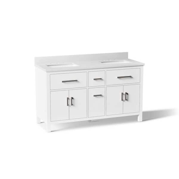 Kresla 61in. Double Sink Freestanding White Bath Vanity with White Quartz Top Assembled