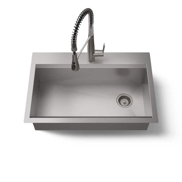 Lassen 33 in. Drop-in Single Bowl Stainless Steel Kitchen Sink with Faucet