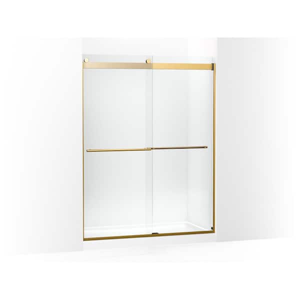 Levity Plus 57-60 in. W x 78 in. H Sliding Frameless Shower Door in Vibrant Brushed Moderne Brass with 5/16 in. Glass