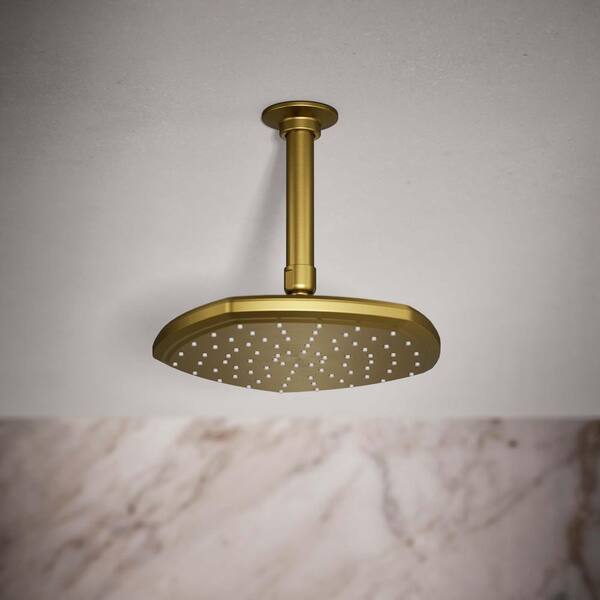 Occasion 1-Spray Patterns with 2.5 GPM 8 in. Wall Mount Fixed Shower Head in Vibrant Brushed Moderne Brass