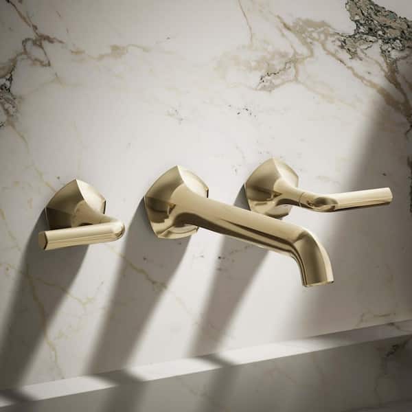 Occasion 2-Handle Wall-Mount Bathroom Sink Faucet Lever Handle Trim 1.2 GPM in Vibrant French Gold