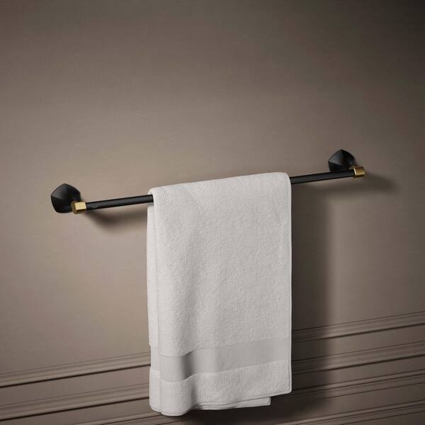 Occasion 24 in. Wall Mounted Single Towel Bar in Matte Black with Moderne Brass
