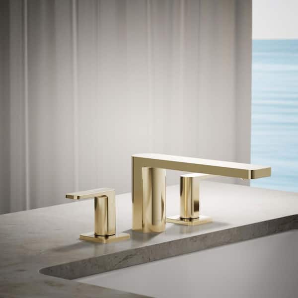 Parallel Deck-Mount Double Handle Bath Faucet in Vibrant French Gold