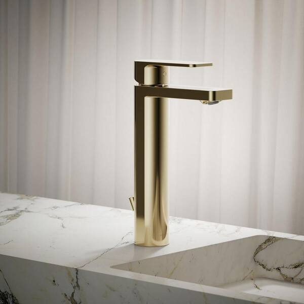 Parallel Tall Single-Handle Bathroom Sink Faucet 0.5 Gpm in Vibrant French Gold