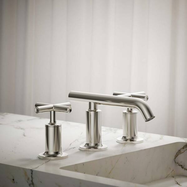 Purist 2-Handle 8 in. Widespread Bathroom Faucet with Low Cross Handles and Low Spout in Vibrant Polished Nickel