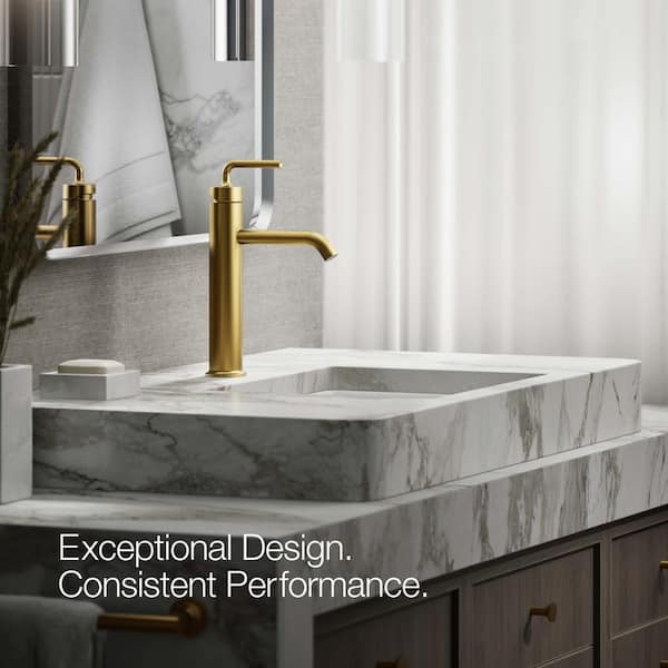 Purist Tall Single Handle Vessel Sink Faucet in Vibrant Brushed Moderne Brass