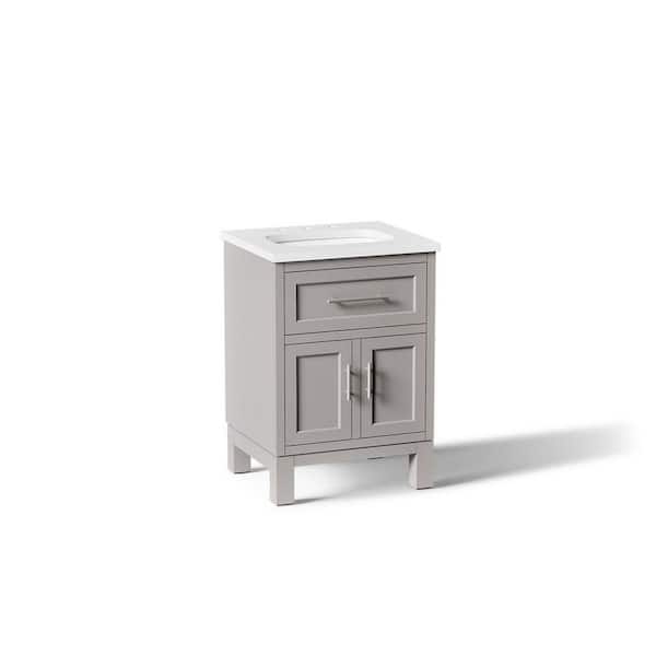 Quo 25in. Single Sink Freestanding Mohair Grey Bath Vanity with White Quartz Top Assembled