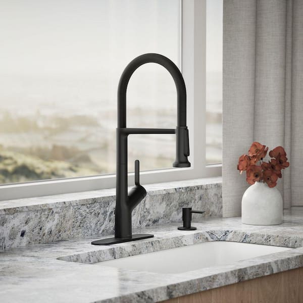 Setra Single-Handle Semi-Professional Kitchen Sink Faucet with Soap Dispenser in Matte Black