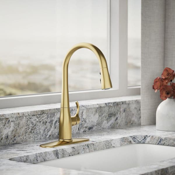 Simplice Single-Handle Pull Down Kitchen Sink Faucet with in Vibrant Brushed Moderne Brass