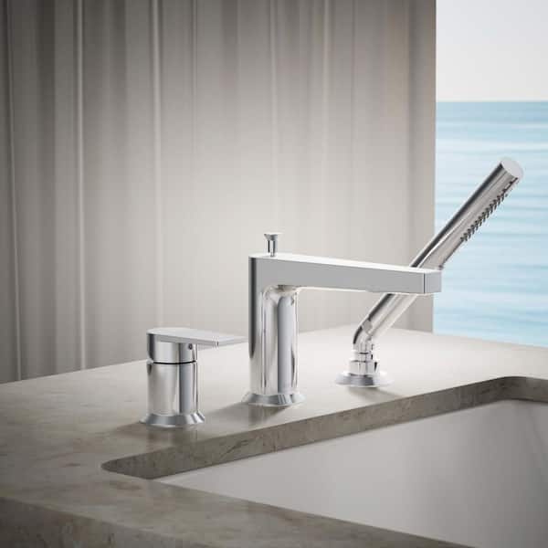 Taut 3-Hole Single Handle 11.0 GPM Bathtub Faucets with Sidespray in Polished Chrome