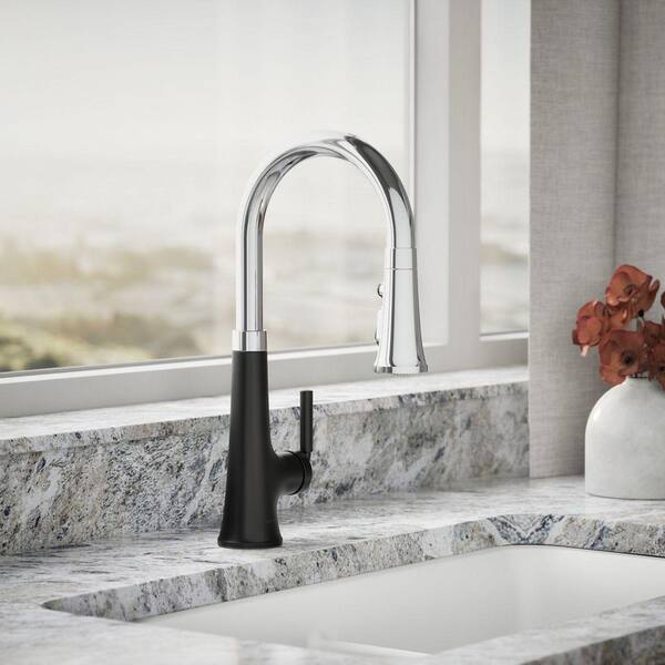 Tone Single Handle Pull Down Sprayer Kitchen Faucet in Polished Chrome with Matte Black