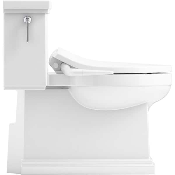 Tresham 1-piece 1.28 GPF Single Flush Elongated Toilet with Puretide Manual Bidet Toilet Seat in White