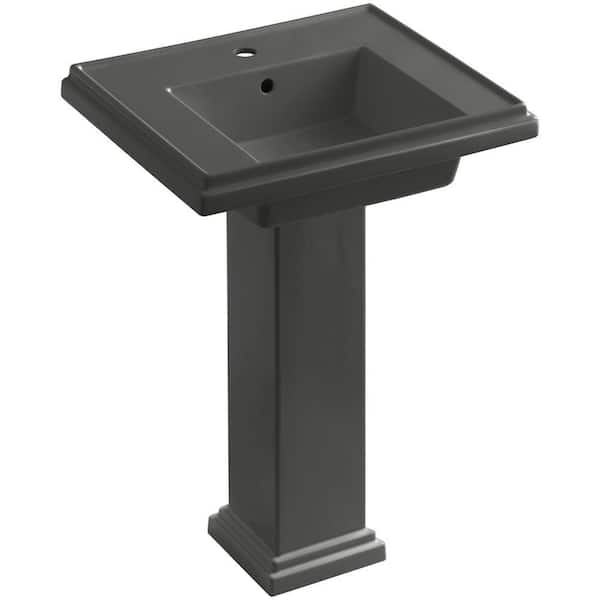 Tresham Ceramic Pedestal Combo Bathroom Sink with Single-Hole Faucet Drilling in Thunder Grey with Overflow Drain