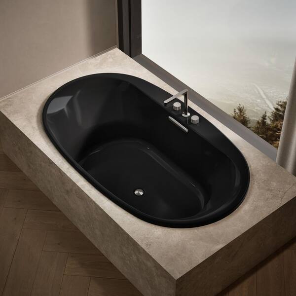 Underscore 72 in. x 42 in. Oval Soaking Bathtub with Center Drain in Black