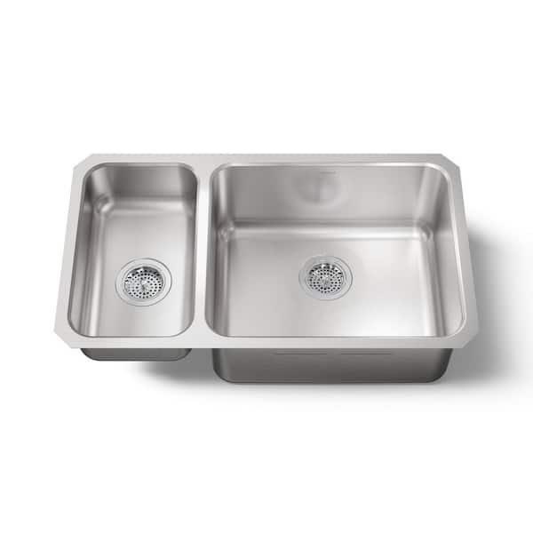 Undertone Undercounter Stainless Steel 31.5 in. 0 hole Double Basin Kitchen Sink