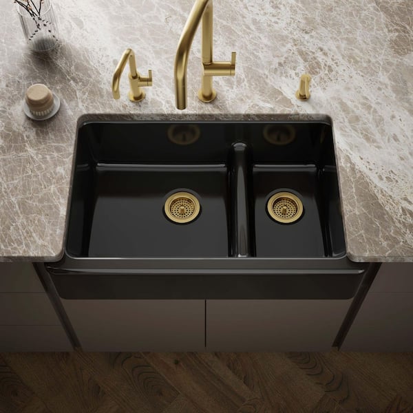 Whitehaven Smart Divide Farmhouse Apron-Front Cast Iron 36 in. Double Basin Kitchen Sink in Black
