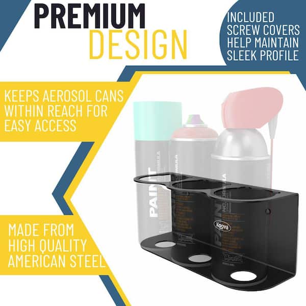 3.3 in. x 9.2 in. x 3.7 in. Black Steel Garage Wall Shelf Three Spray Can Holder