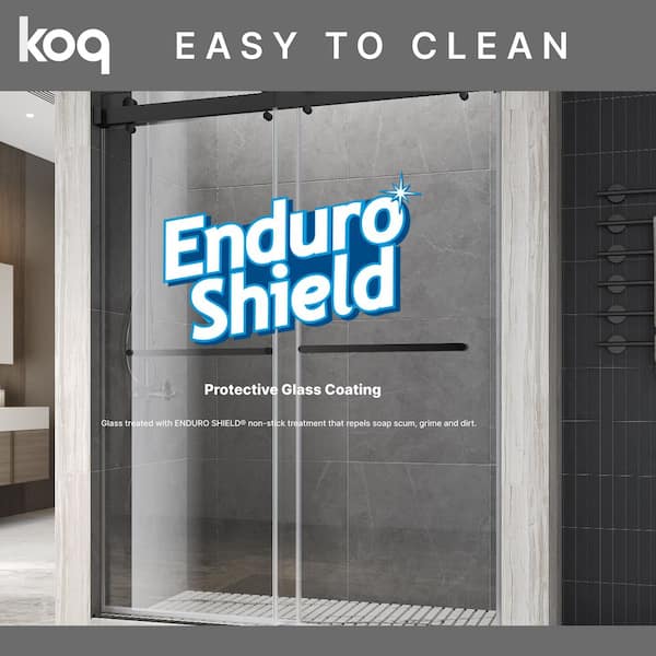 60 in. W x 76 in. H Double Sliding Frameless Shower Door in Matte Black Finish with 3/8 in. Clear Tempered Glass