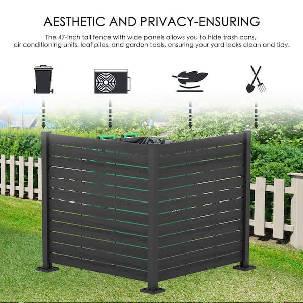 4 ft. W x 4.17 ft. in. H Outdoor Privacy Screens Framed Flat Fence Panels Kit for AC, Trash Can Storage (Black 2-Panels)
