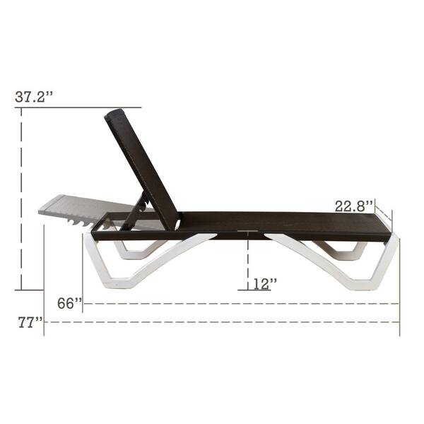 Full Flat Aluminum Outdoor Patio Reclining Adjustable Chaise Lounge Dark Brown Wicker without Table