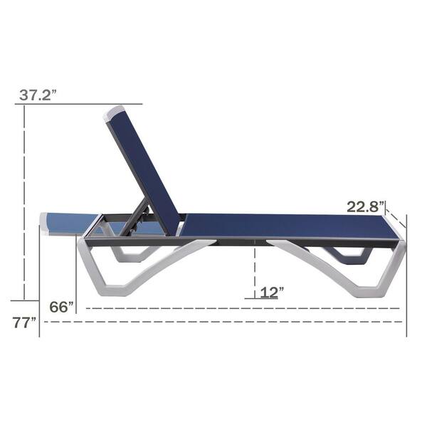 Full Flat Aluminum Patio Reclining Adjustable Chaise Lounge Chair for Sunbathing Beach (NavyBlue Textilence W/O Table)