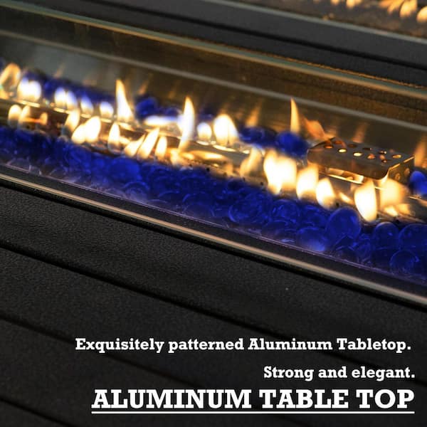 Gray 43 in. x 28 in. Rectangle Aluminum 24 in. H Outdoor Fire Pit Table