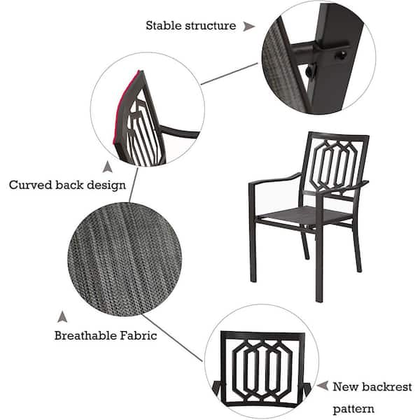 Villa Dark Brown Back Support Metal Frame Outdoor Dining Chair (2-Pack)