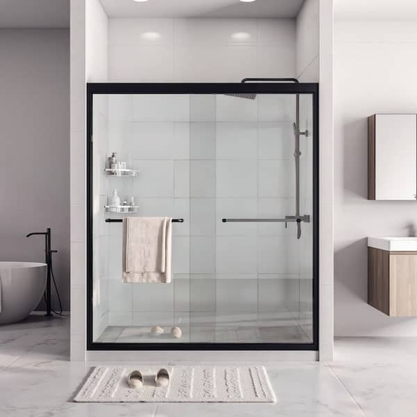 44-48 in. W x 72 in. H Double Slide Shower Door, 1/4 in. Tempered Glass, Explosion-Proof, Stainless Handle, Matte Black