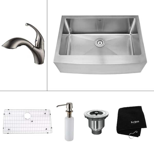 All-in-One Farmhouse Apron Front Stainless Steel 29.75 in. 0-Hole Single Bowl Kitchen Sink with Satin Nickel Accessories