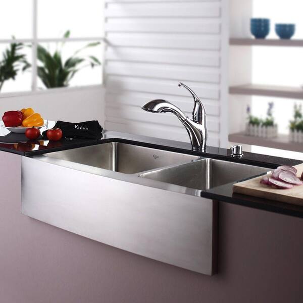 All-in-One Farmhouse Apron Front Stainless Steel 35.9 in. 0-Hole Double Bowl Kitchen Sink with Chrome Accessories