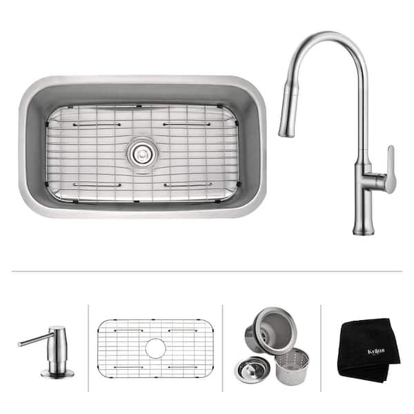 All-in-One Undermount Stainless Steel 32 in. Single Bowl Kitchen Sink with Faucet and Accessories in Chrome