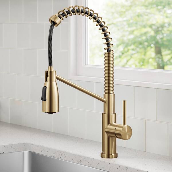 Coda Commercial Style 2-Function Single Handle Pull Down Sprayer Kitchen Faucet in Spot-Free Brushed Brass