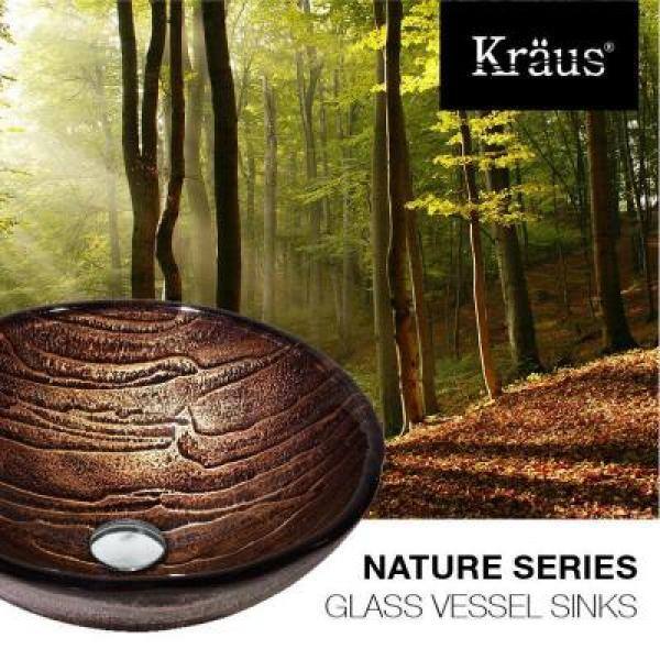Gaia Glass Vessel Sink in Brown with Riviera Faucet in Chrome