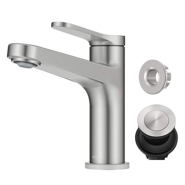 Indy Single Handle Bathroom Faucet in Spot-Free Brushed Nickel with Pop Up Drain and Supply Lines