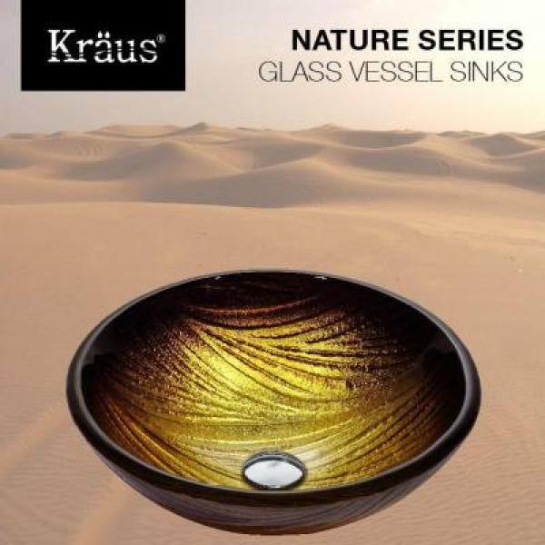Midas Glass Vessel Sink in Gold with Ramus Faucet in Chrome