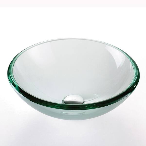Single-Tone 17 in. Round Vessel Bathroom Sink in Clear Glass with Pop-Up Drain and Mounting Ring in Chrome