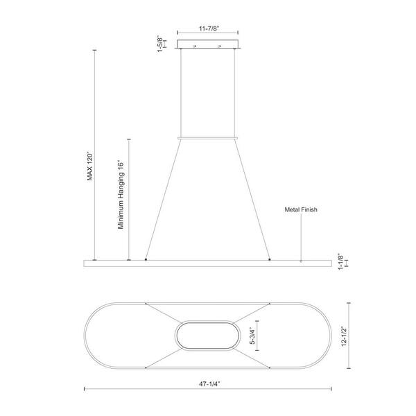 Eerie 47 in. 1 Light 58-Watt Black Integrated LED Pendant Light