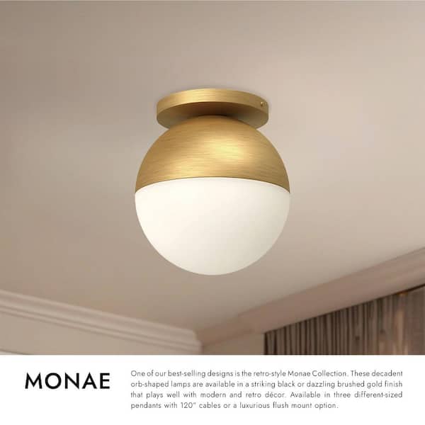 Monae 10 in. 1 Light 60-Watt Black/Opal Glass Flush Mount