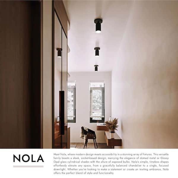 Nola 4 in. 1 Light 40-Watt Black/Glossy Opal Glass Semi-Flush Mount