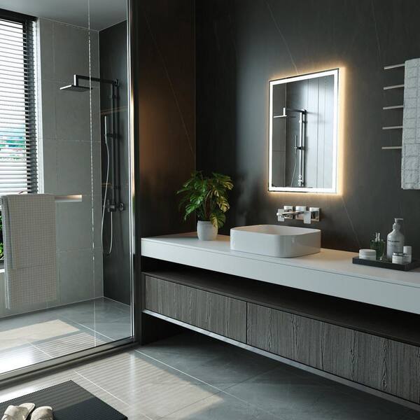 20 in. W x 28 in. H Large Rectangular Frameless Dimmable Anti-Fog Wall Bathroom Vanity Mirror in Silver