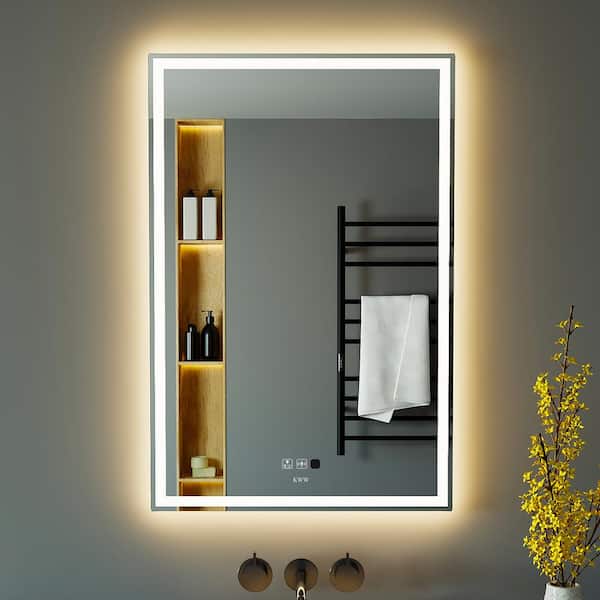 24 in. W x 36 in. H Large Rectangular Frameless Anti-Fog Wall Bathroom Vanity Mirror in Silver
