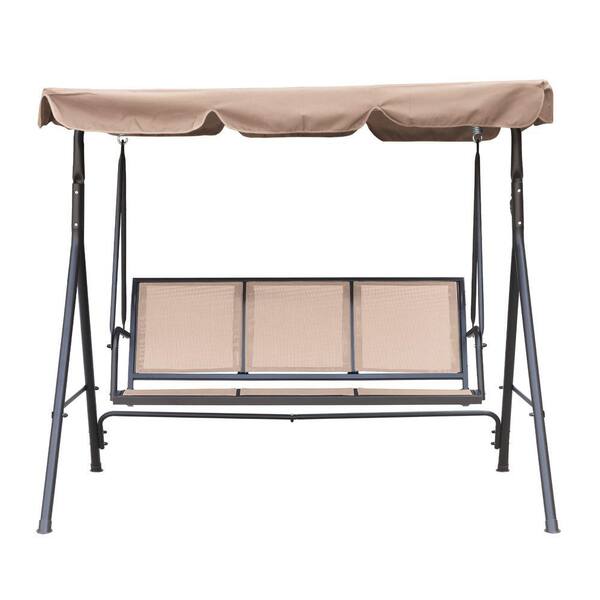 3-Person Beige Steel Frame Freestanding Metal Patio Swing Porch with Adjustable Canopy Swing Glider Patio Loveseat Bench