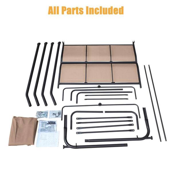 3-Person Beige Steel Frame Freestanding Patio Swing with Beige Soft Removable Cushion Adjustable Canopy Porch Swing Deck