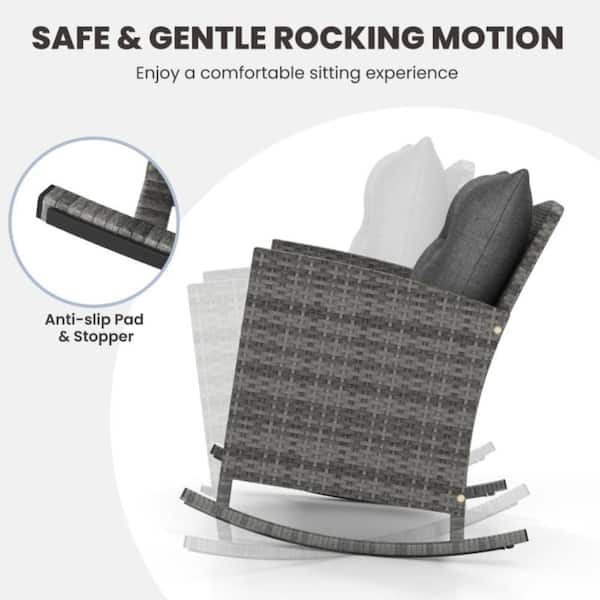 3-Piece Patio Rattan Wicker Outdoor Rocking Chair with Beige Cushions and Tempered Glass Table Wicker Rocker Set