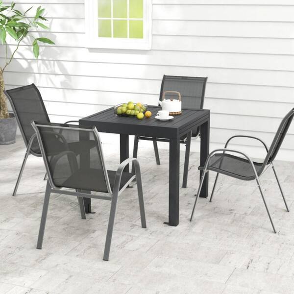 5-Piece Metal Frame Outdoor Dining Table Set with Extendable Aluminum Table and Stackable Chairs