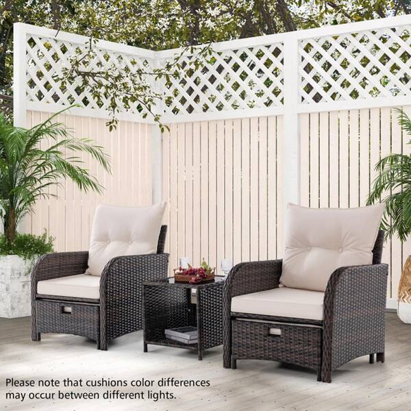 5-Piece Wicker Rattan Patio Conversation Set with Coffee Table and Cushions in Beige