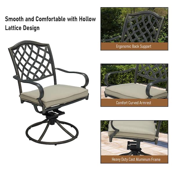 Bronze Cast Aluminum Frame Smooth Arms and Ergonomic Back Outdoor Dining Chair with Fabric Beige Cushion 4-Pack