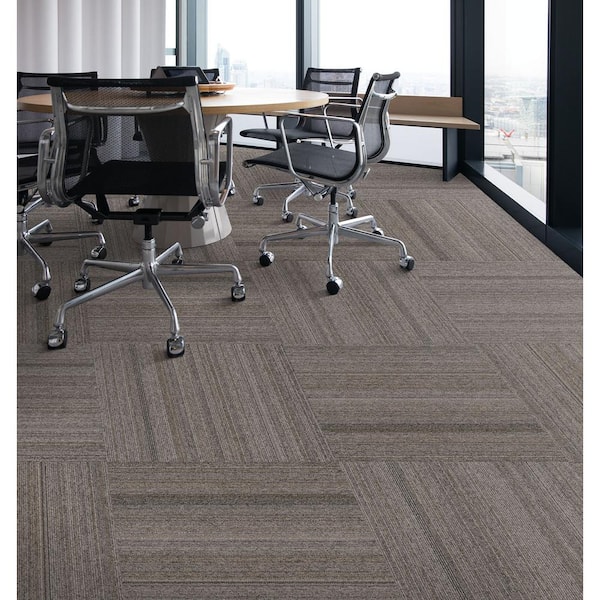 • Commercial grade, gray/neutral beige low-pile indoor carpet tile