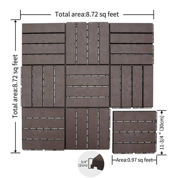 1 ft. x 1 ft. Quick Deck Outdoor Waterproof Flooring All Weather Composite Deck Tile in Dark Brown (27 sq. ft. Per Box)