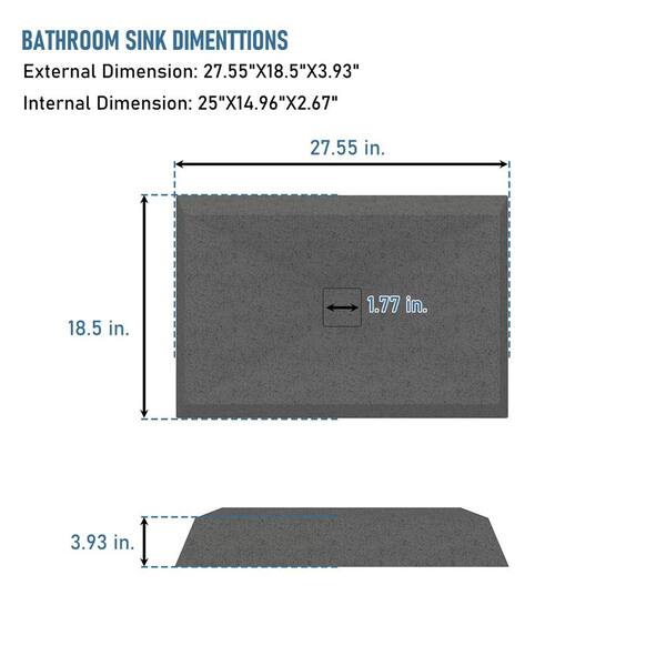 27.55 in. Rectangular Vessel Bathroom Sink in Mottled Bluish Gray Cement